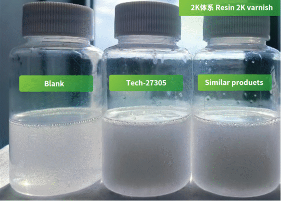 The core value of Tech-27305 lies in achieving a balance between high performance and application safety. In terms of performance, it demonstrates excellent compatibility, low bubble stability, and outstanding anti-cratter capability across various resin systems (2K PU, UV, epoxy, etc.). Its leveling effect is comparable to international benchmark products.