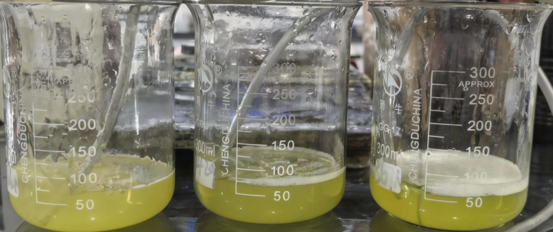 Simulate the production mixing process through high-speed dispersion testing. Take 100g of pesticide formulation (including surfactants) and add equal proportions of defoamers. Use a high-speed disperser to disperse at high speed for 30 minutes and observe the degree of foaming