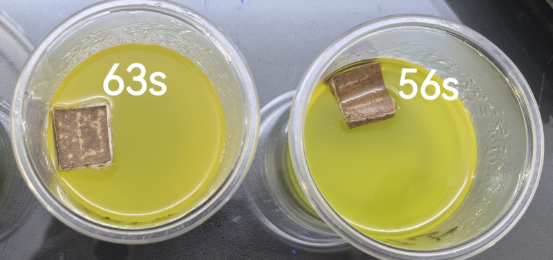 Using porous materials of the same area, observe the permeability performance of different products when testing complete infiltration wetting