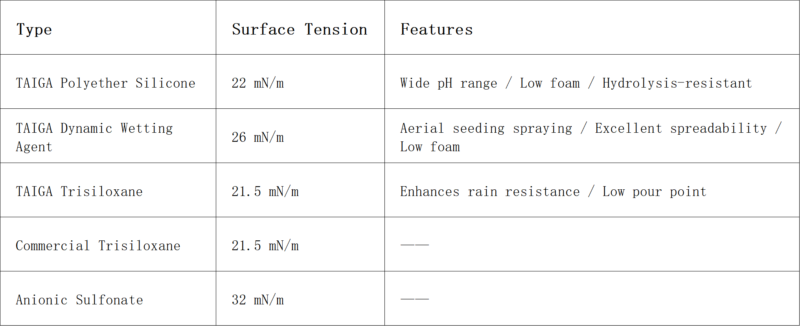 TAIGA High Performance Spreader exhibits excellent spreading, penetration, and adhesion properties when applied, as well as low stomatal permeability, which can enhance the deposition and adhesion of spray droplets on leaf surfaces, thereby reducing spray volume and improving pesticide efficacy.