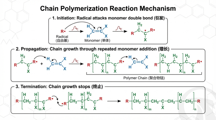 The generated free radicals will attack the unsaturated double bonds or epoxy groups on the monomer/oligomer molecules in the formula, causing them to open chemical bonds and begin chain growth, resulting in a chain polymerization reaction. The adhesion promoting agent begins to participate in the reaction;