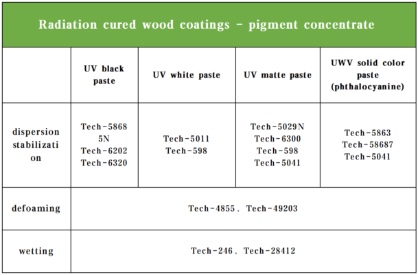 UV wood color paste needs to combine high pigment content with the fast reaction and low solvent characteristics of the UV curing system. Common pain points include: