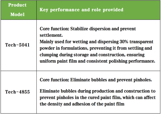 Some additives used to improve surface smoothness, hand feel, and scratch resistance need to be comprehensively considered for their compatibility with the system and potential impact on subsequent coating adhesion when applied.